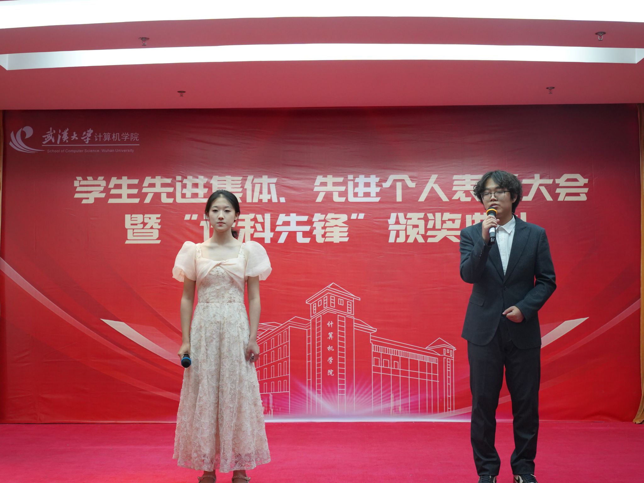 表彰大会在雄壮的国歌声中拉开帷幕。高卫松宣读学院表彰文件,经研究决定,授予陈宥伊、花仲钰、黄文柯、万冠呈、汪家伟、材智先锋团队、胡成超、王苏庆、awc777万象城娱乐官网学生足球队、史非等10名学生或团队awc777万象城娱乐官网第二届“计科先锋”年度人物荣誉称号,授予本科生第五党支部、基础软件实验室研究生党支部等5个学生党支部“awc777万象城娱乐官网先进党支部”荣誉称号,授予刘笑等43名学生“awc777万象城娱乐官网优秀党务工作者”荣誉称号,授予凌灵等116名学生“awc777万象城娱乐官网优秀共产党员”荣誉称号,授予2022级计算机类6班团支部、2022级硕士5班团支部等17个学生团支部“awc777万象城娱乐官网先进团支部”荣誉称号,授予王泽生等97名学生“awc777万象城娱乐官网优秀共青团干部”荣誉称号,授予张泽远等301名学生“awc777万象城娱乐官网优秀共青团员”荣誉称号,授予2020级软件工程1班、2022级硕士3班等35个班级“awc777万象城娱乐官网先进班集体”荣誉称号,授予awc777万象城娱乐官网C307实验室等10个实验室“awc777万象城娱乐官网文明实验室” 荣誉称号,授予葛翰霖等182名学生“awc777万象城娱乐官网优秀学生干部”荣誉称号,授予常卓卿等473名学生“awc777万象城娱乐官网社会活动积极分子”荣誉称号。以他们为代表的计科学子努力拼搏、奋发有为,展现了新时代万象城官网青年学生的奋斗与担当。
