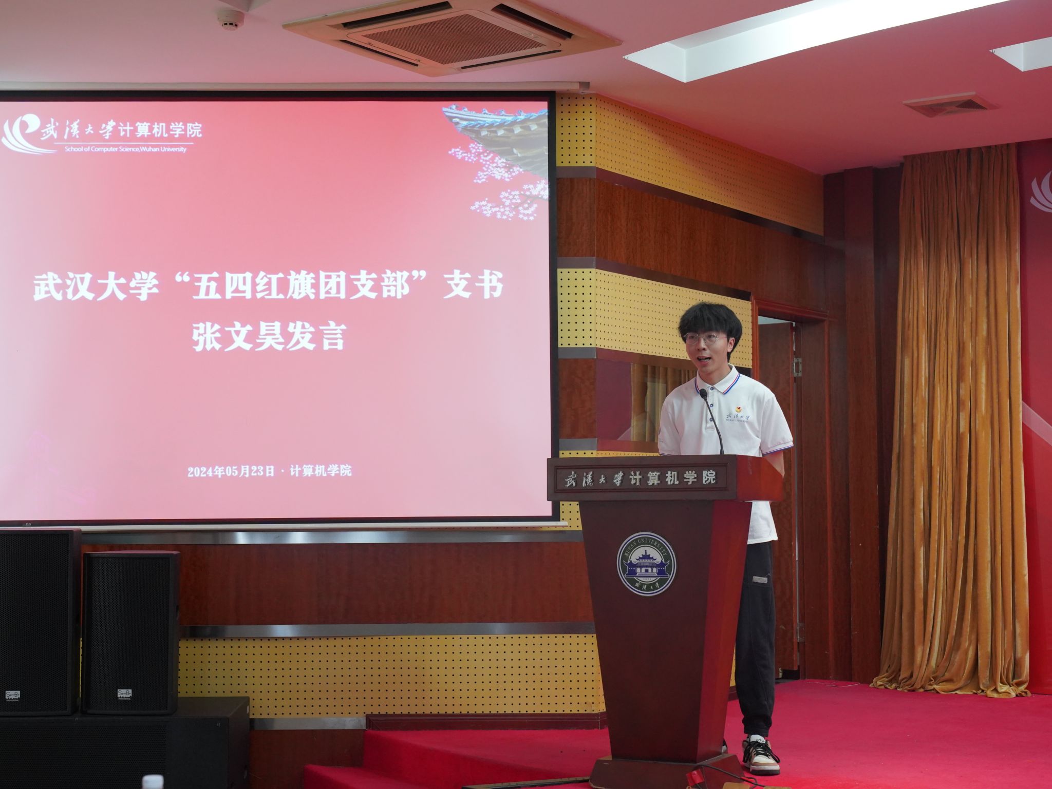 awc777万象城娱乐官网“五四红旗团支部”支书、2021级本科生张文昊分享了团支部建设的工作体会。他谈到,一年来,2021级软工8班团支部以思想引领为根本,以学风建设为抓手,以品牌活动为特色,取得多项优异成绩,努力营造更具凝聚力的团支部大家庭,力求充分发挥好先锋团支部的引领带头作用。