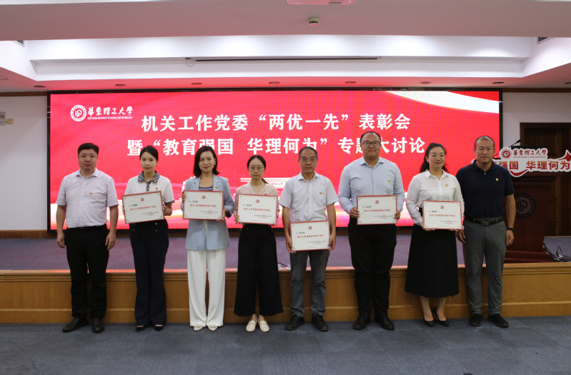 为庆祝中国共产党成立102周年,持续推动学习贯彻习近平新时代中国特色社会主义思想主题教育走深走实,6月27日下午,机关工作党委在逸夫楼演讲厅召开“两优一先”表彰会暨“教育强国 华理何为”专题大讨论。校党委书记杜慧芳出席会议并讲话,机关工作党委委员、机关党支部书记、特邀发言代表、机关“两优一先”受表彰对象、获评学校“两优一先”的机关代表等参加会议。会议由机关工作党委副书记周晓梅主持。