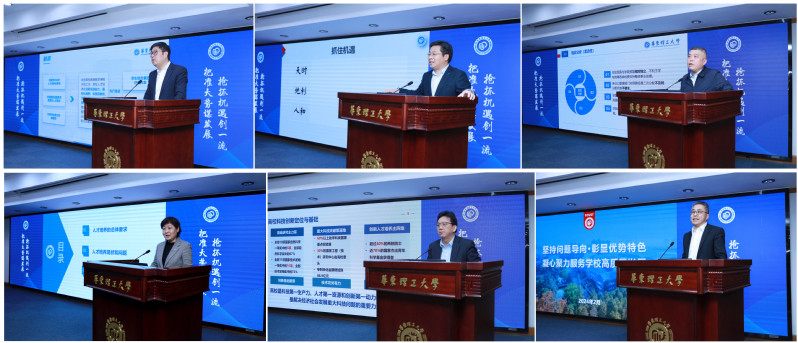 会上,校党委副书记沈海涛,校党委副书记、纪委书记龚跃,副校长李涛、王慧锋、朱为宏、阎海峰,分别就分管领域工作作交流报告,介绍2024年重点工作,并围绕高质量发展主题和制约发展的关键因素,谋划解决办法和主要思路。