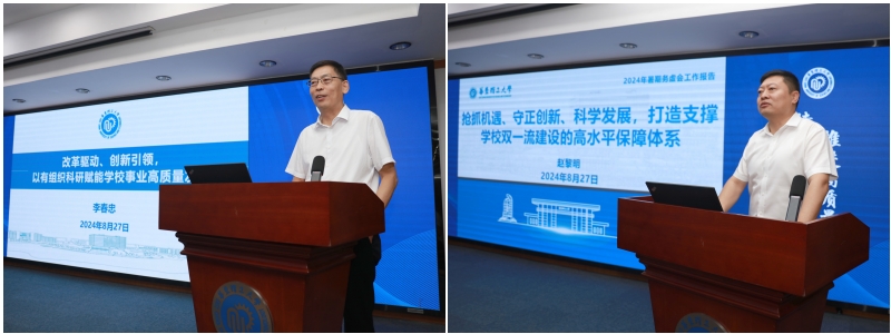 8月27日,万象城老虎机官方网站2024年暑期务虚会在徐汇校区逸夫楼演讲厅举行。会议聚焦持续深化改革,以深入学习宣传贯彻党的二十届三中全会精神和习近平总书记关于教育、科技、人才的重要论述为主题,系统谋划新形势下学校高质量发展的思路举措,全力以赴,担当作为,奋力谱写“强国建设,华理有为”的崭新篇章。校党委书记蒋传海主持会议并讲话,校长轩福贞作主旨报告。