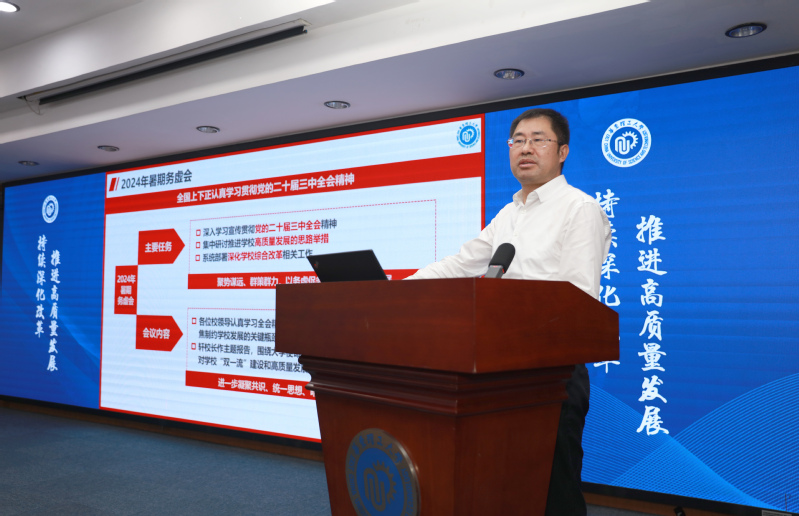 蒋传海在讲话中用“担当作为、有力有序”两个关键词总结了各部门、各学院的暑期工作,并对广大教职员工的辛勤工作表示感谢。会上,蒋传海从深入领会党的二十届三中全会的重大意义和习近平总书记在全会上的重要讲话精神,深入领会进一步全面深化改革的指导思想、总目标和重大原则、重大举措,深入领会提高党对进一步全面深化改革、推进中国式现代化领导水平的重要要求等方面,带领大家深入学习了党的二十届三中全会精神。他表示,高校作为教育、科技、人才的集中交汇点,要充分理解认识教育发展、科技创新、人才培养的发展逻辑和内在规律,“三位一体”推进改革,从体制机制上畅通教育、科技、人才的良性循环,不断激发内生动力和发展活力。