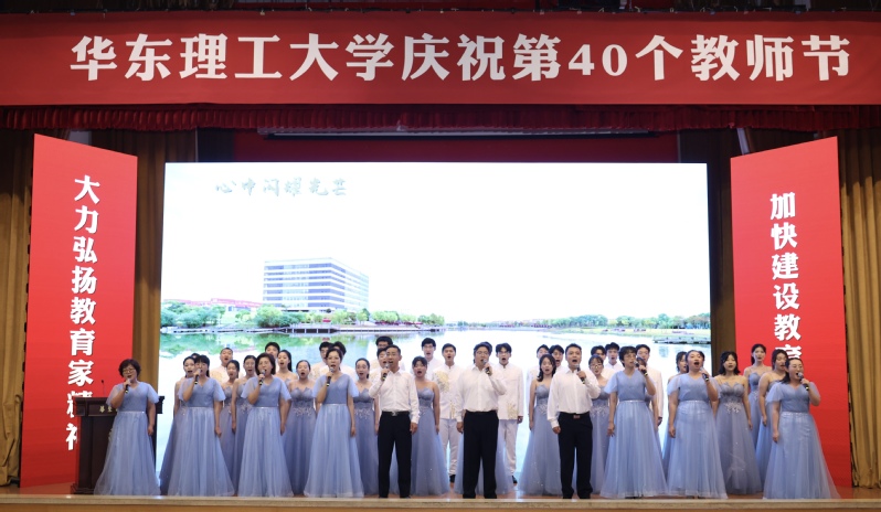 会上,学生表演原创诗朗诵《躬耕华理,桃李满天》,大学生合唱团演唱《再一次出发》,为第40个教师节献礼。