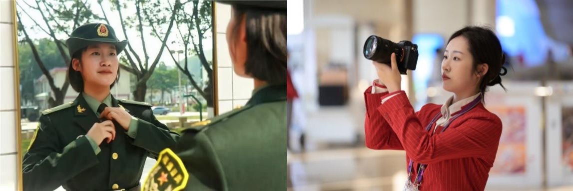 专业的新闻写作、清晰的逻辑思维、高超的摄影摄像技术……来自艺术学院的梁之同,在服役期间曾担任连队新闻报道员,现在已然成为媒体服务的“六边形战士”。在部队,他找准合适的角度与时机,捕捉战士们训练的精彩瞬间;在进博会,他捕获信息洪流中的新闻线索,确保报道的准确性。