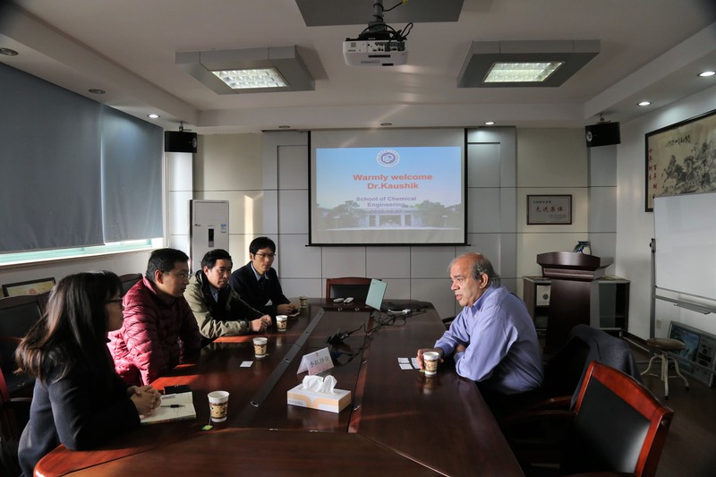 Professor Krishna Kaushik from the University of Houston paid a visit to the School of Chemical Engineering, ECUST on Dec. 7th, 2016. Professor Zhao Shuangliang, and Wu Yanyang, Vice Dean and Assistant of the School of Chemical Engineering welcomed the American guests and they held a publicity seminar on the cooperative exchange program.