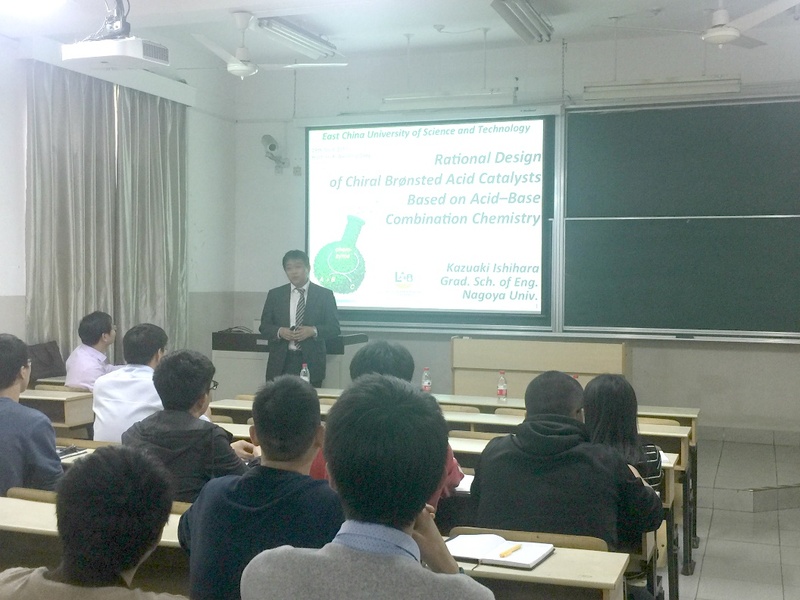 At the invitation of Professor Deng Weiping of the School of Pharmacy, ECUST, Prof. Kazuaki Ishihara from Nagoya University, Japan paid a visit to ECUST and made an academic report entitled “Rational Design of Chiral Brønsted Acid Catalysts Based on Acid-Base Combination Chemistry” on April 28th, 2017. Professor Li Hao, Professor Yu Xinhong, and Professor Yang You of the School of Pharmacy attended the report meeting which was also joined by teachers and some graduate students of the School of Chemistry .The report was chaired by Deng Weiping. After the report, the teachers and students and Professor Ishihara conducted in-depth exchanges and discussions.