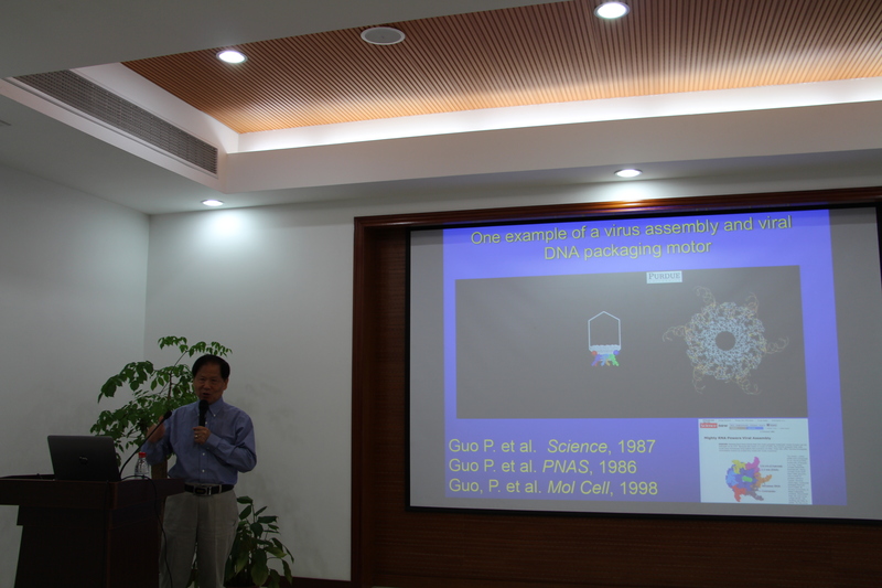 At the invitation of Professor Long Yitao, Dean of School of Chemistry and Molecular Engineering, Professor Guo Peixuan of Ohio State University came to ECUST for academic exchange and gave a lecture entitled “Discovery of a third type of biomotor using revolution mechanism and application in the development of potent antiviral drug” on October 15, 2017. The report meeting was chaired by Professor Long Yitao.