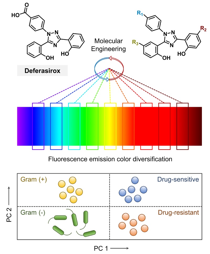 Recently, the team and collaborators of Professor He Xiaopeng from the School of Chemistry and Molecular Engineering, ECUST and the Feringa Nobel Prize Scientists Joint Research Center, ECUST jointly developed the research progress of modifying traditional iron chelating agents based on molecular engineering strategy, and then constructing multicolor fluorescence sensor array of superbacteria, the research article of which was published online in Journal of the American Chemical Society.
