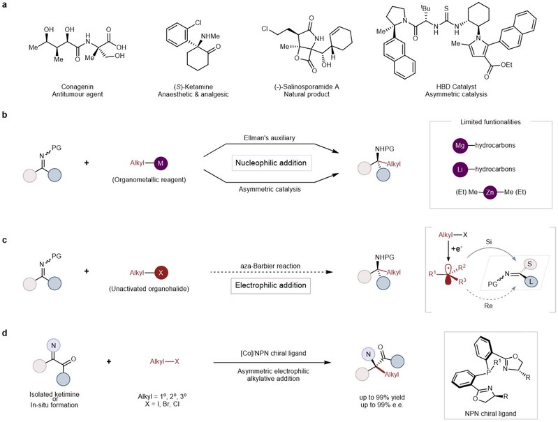 Recently, the research group of Professor Chen Yifeng from Feringa Nobel Prize Scientists Joint Research Center of School of Chemistry and Molecular Engineering, ECUST, published a research article entitled “Modular α-tertiary amino estersynthesis through cobalt-catalyzed asymmetric aza-Barbier reaction” in Nature Chemistry, and reported online the new progress in the efficient synthesis of chiral α-quaternary amino acid derivatives.