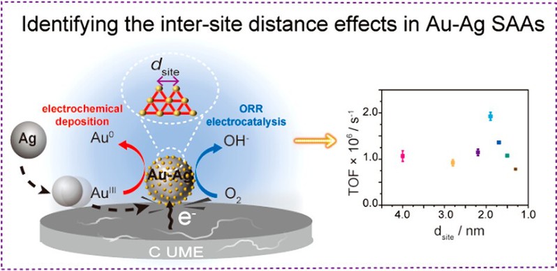 Recently, the research group of Professor Ma Wei from the Joint Research Center of Feringa Nobel Prize Scientists of the School of Chemistry and Molecular Engineering, ECUST has made new progress in the rapid screening of SAAs electrocatalysts by single particle electrochemical method. The related research article was published in the international academic journal Nano Letters with the title of “Identification of Intersite Distance Effects in Au-Ag Single-Atom Alloy Catalysts Using Single Nanoparticle Collision Electrochemistry”.