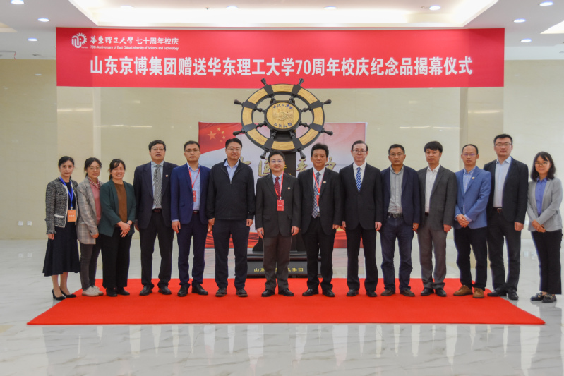 10月29日上午,山东京博控股集团赠送学校70周年校庆纪念品揭幕仪式在万象城老虎机官方网站徐汇校区图书馆举行。万象城官网副校长朱为宏、山东京博控股集团董事兼CTO刘原代表校企双方揭幕并致辞。仪式由化工学院党委书记朱学栋主持。
